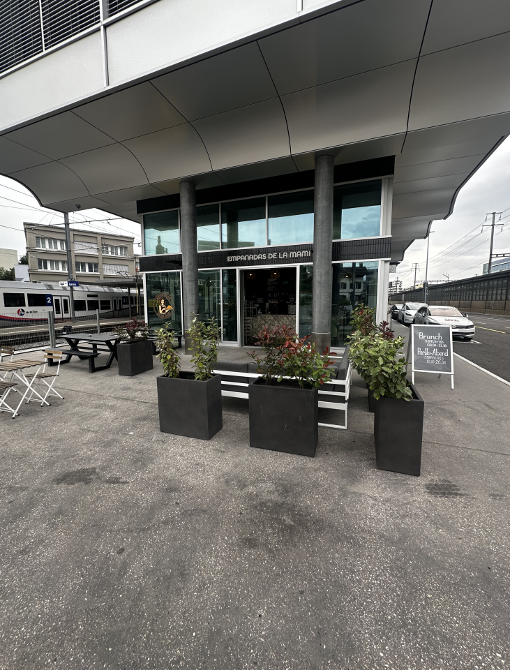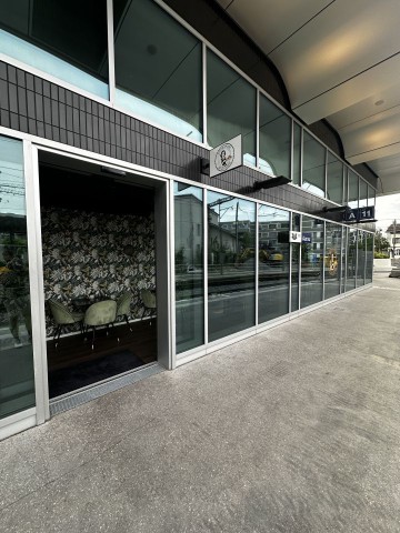Das Lokal ist von zwei Eingängen her (automatische Schiebetüren) betretbar und überzeugt durch eine ideale Sichtbarkeit dank grossen Fensterfronten.
