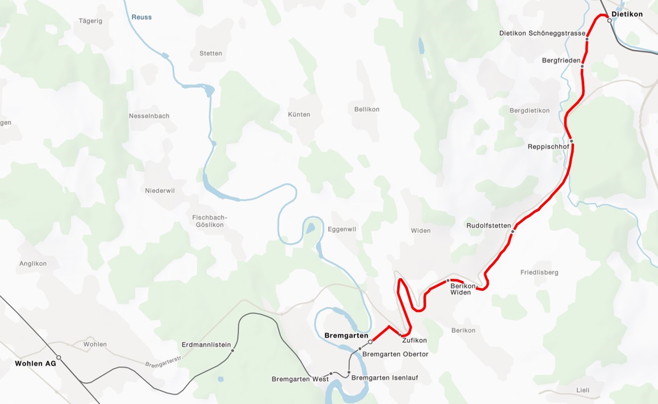 Infolge Bauarbeiten für die neue Limmattal Bahn am Bahnhof Dietikon sowie weiterer Bau- und Sanierungsarbeiten fallen die Züge der S17 zwischen Bremgarten und Dietikon aus. Es verkehren Ersatzbusse.